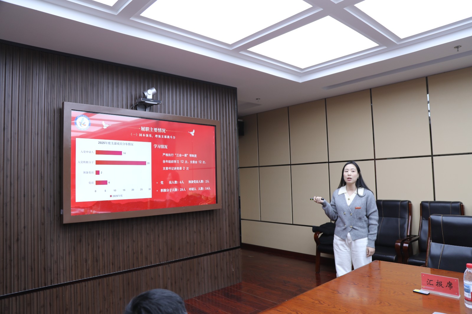 王常军书记结合现场述职情况作总结点评。他充分肯定了各党支部2025年度工作成绩,特别是对各支部围绕“七个有力”要求,扎实推进标准化、规范化建设给予了高度评价。同时他要求大家正视短板和困难,在2026年抓基层党建工作中切实加以改进。他强调,各党支部书记要切实履行第一责任人职责,进一步加强支部标准化、规范化建设,不断提升基层党组织的公信力、凝聚力和号召力。各支部要强化理论武装,持续深化党建品牌建设,扎实构建“一融双高”新格局,以高质量党建促进事业高质量发展,充分发挥基层党组织的战斗堡垒作用。(党委办公室 杨芷琪供稿/供图)