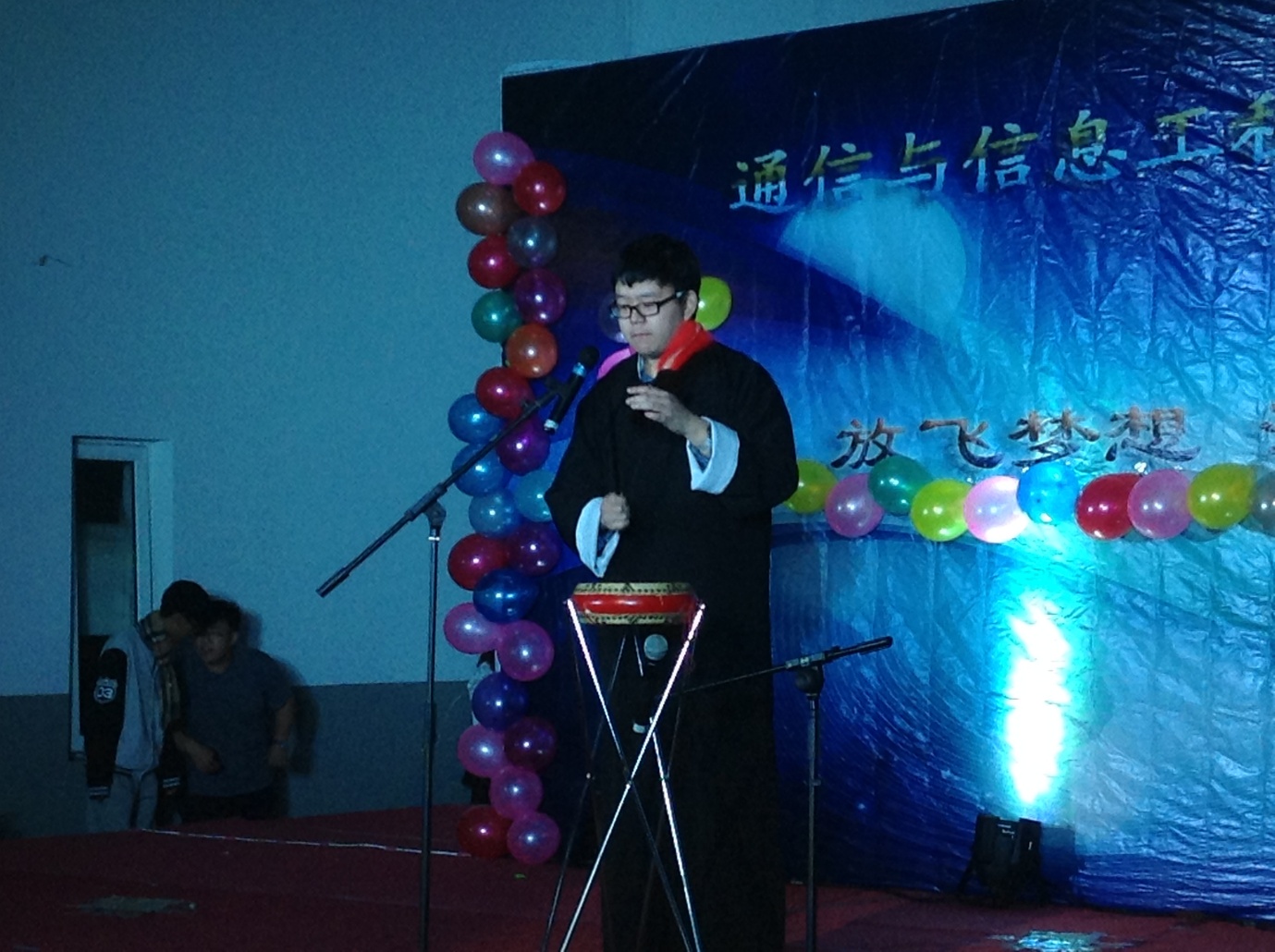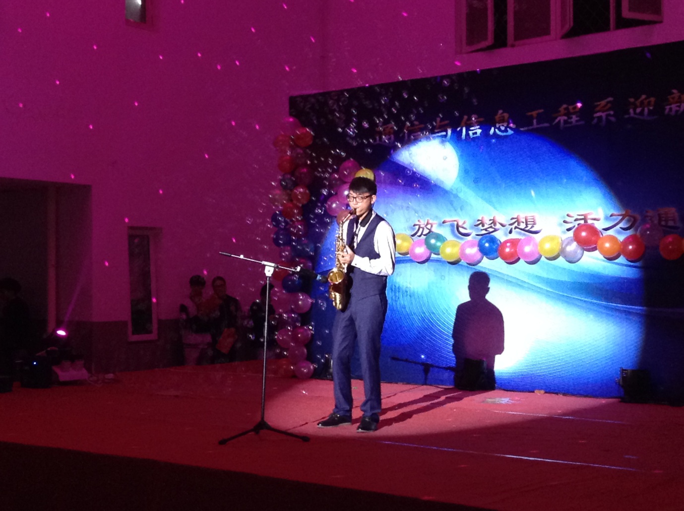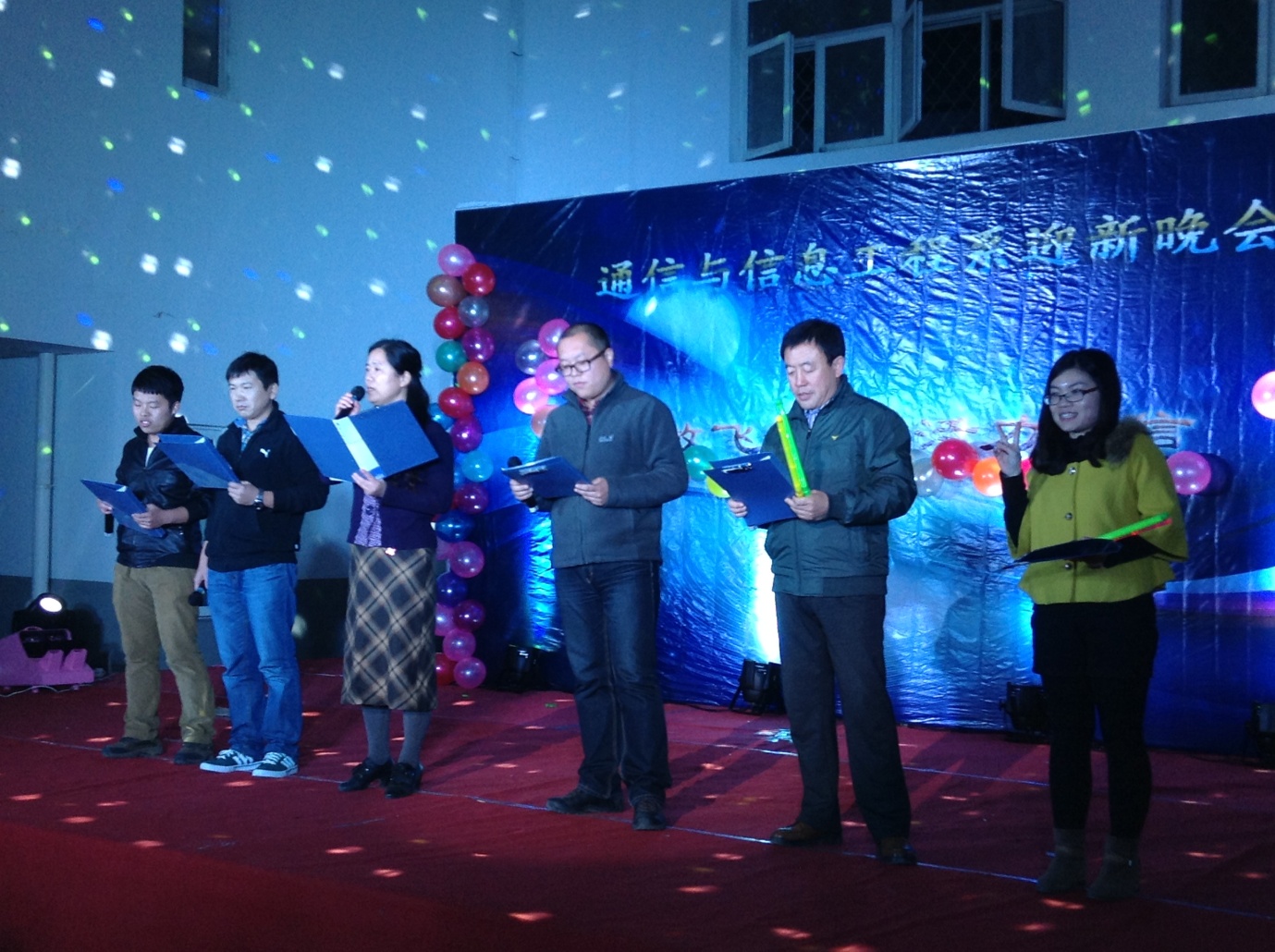 2014年10月22日晚上六点,通信与信息工程系2014级“放飞梦想,活力通信”迎新晚会在行知楼一层大厅隆重举行。学生处副处长吴寿清老师、学生处倪洋老师、通信系副主任刘刚老师、副主任沙招友老师、工会副主席郭琳老师,宗保平老师及全体辅导员均莅临晚会现场,我系大一学生更是积极参加,座无虚席。