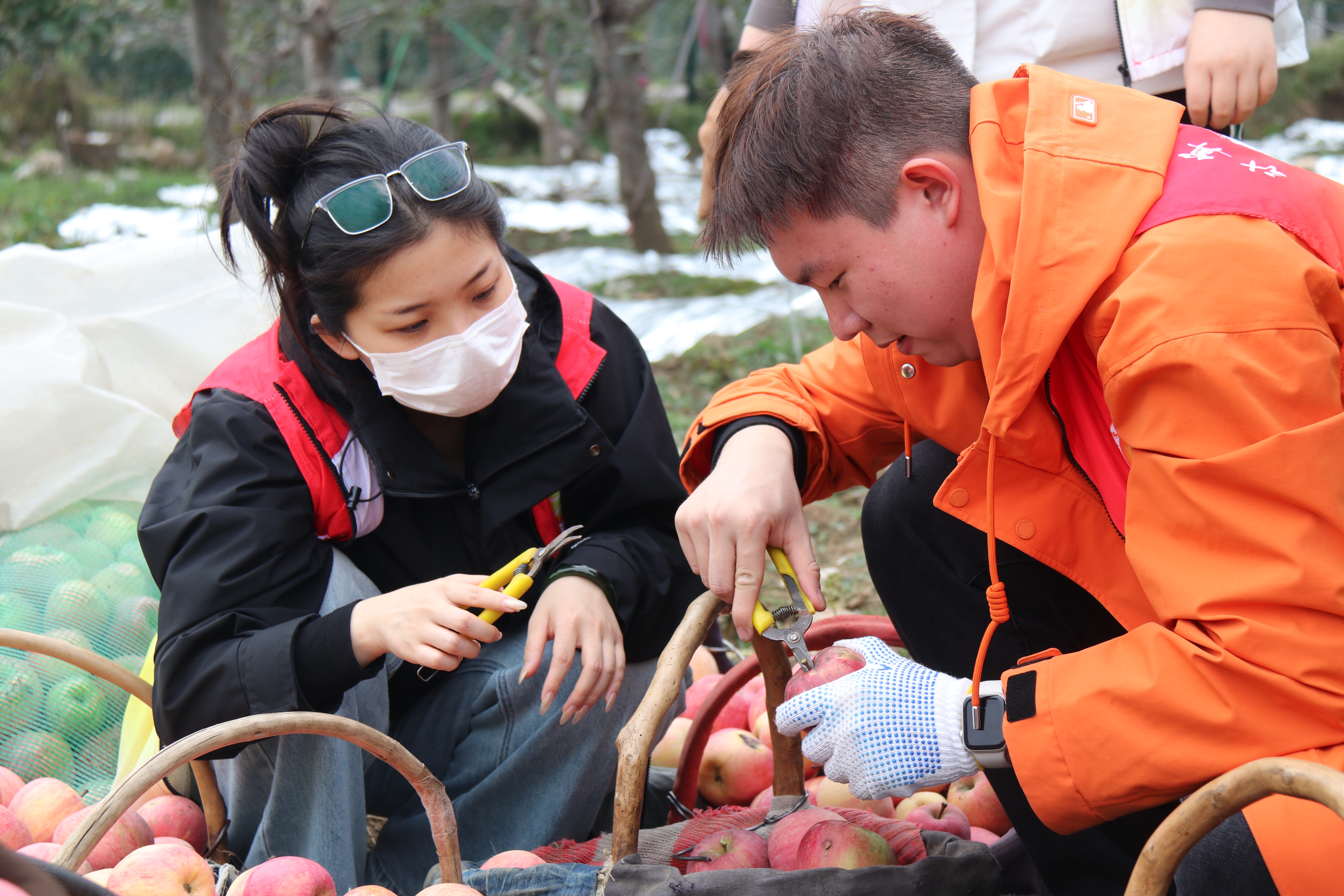 走进果园,红彤彤的苹果挂满枝头,硕果累累的丰收景象扑面而来——这既是果农辛勤耕耘的成果,更是党的乡村振兴政策落地见效的生动缩影。然而,喜悦之下藏着忧虑:近期气温下降快,苹果若不及时采摘易受冻损,加之该果农家庭劳动力不足,面对连片果园,采摘进度远远赶不上需求。了解到这一紧急情况后,计科系学生党支部迅速发起倡议,志愿者们利用课余时间,带着热情与责任积极投身助农劳动。