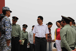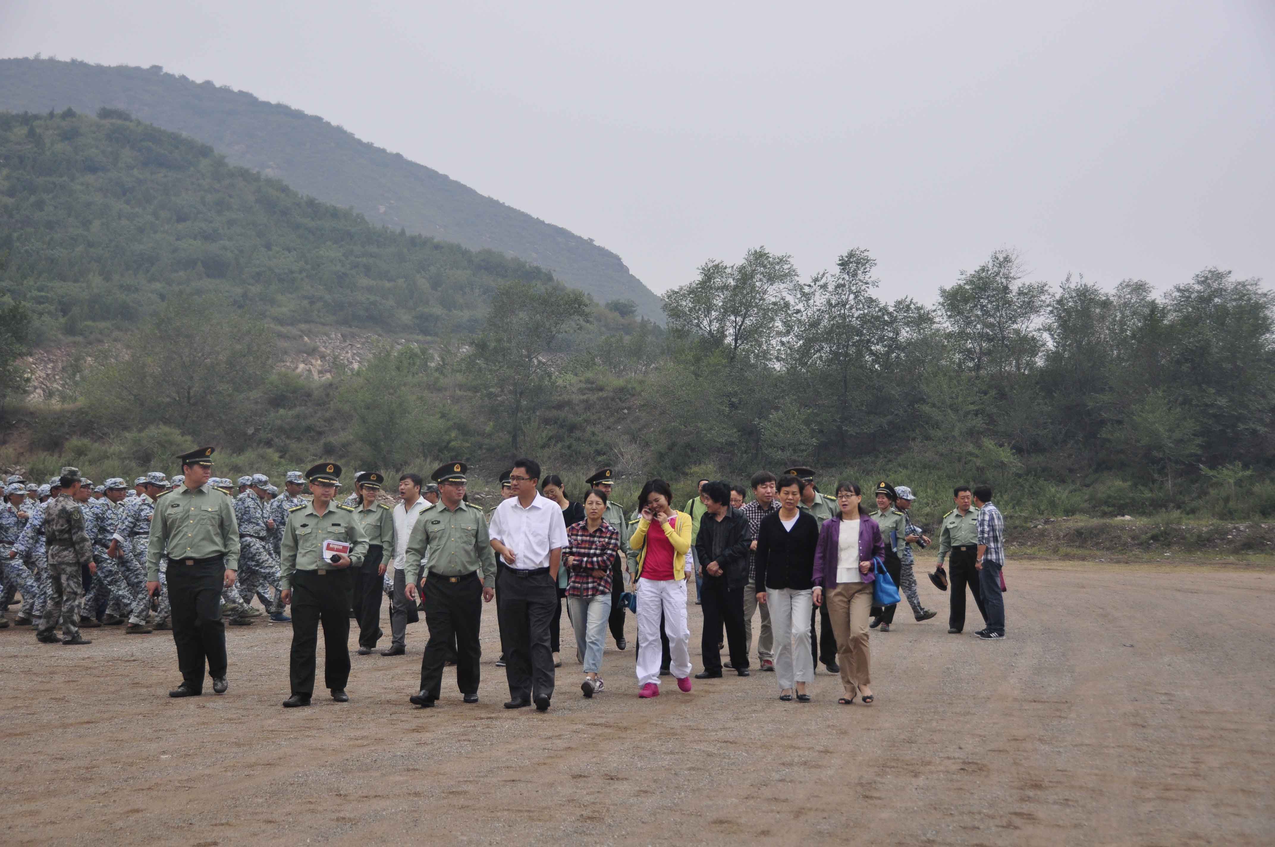 8月29日十点,学院领导一行来到八达岭军训基地,慰问2014级军训团所有教师及学生。参加此次慰问的领导有学院党委副书记兼副院长孙凯,综合办主任周伟,招生与就业处处长宋向阳、副处长王帅,教务处副处长王平,学生处副处长吴寿清,后勤处副处长周文照,艺术与传媒学院院长胡杰,通信与信息工程系主任张茹,计算机科学与技术系副主任邢俊英,电子与自动化系副主任郭超,经济管理系副主任师蕾,外语系副主任贺贝,艺术与传媒学院团总支书记姬世祥,通信与信息工程系辅导员杨松亮以及后勤处老师杨光等。