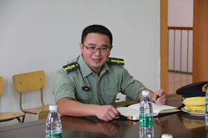军训工作汇报会现场 军训团政委杜欣做工作汇报