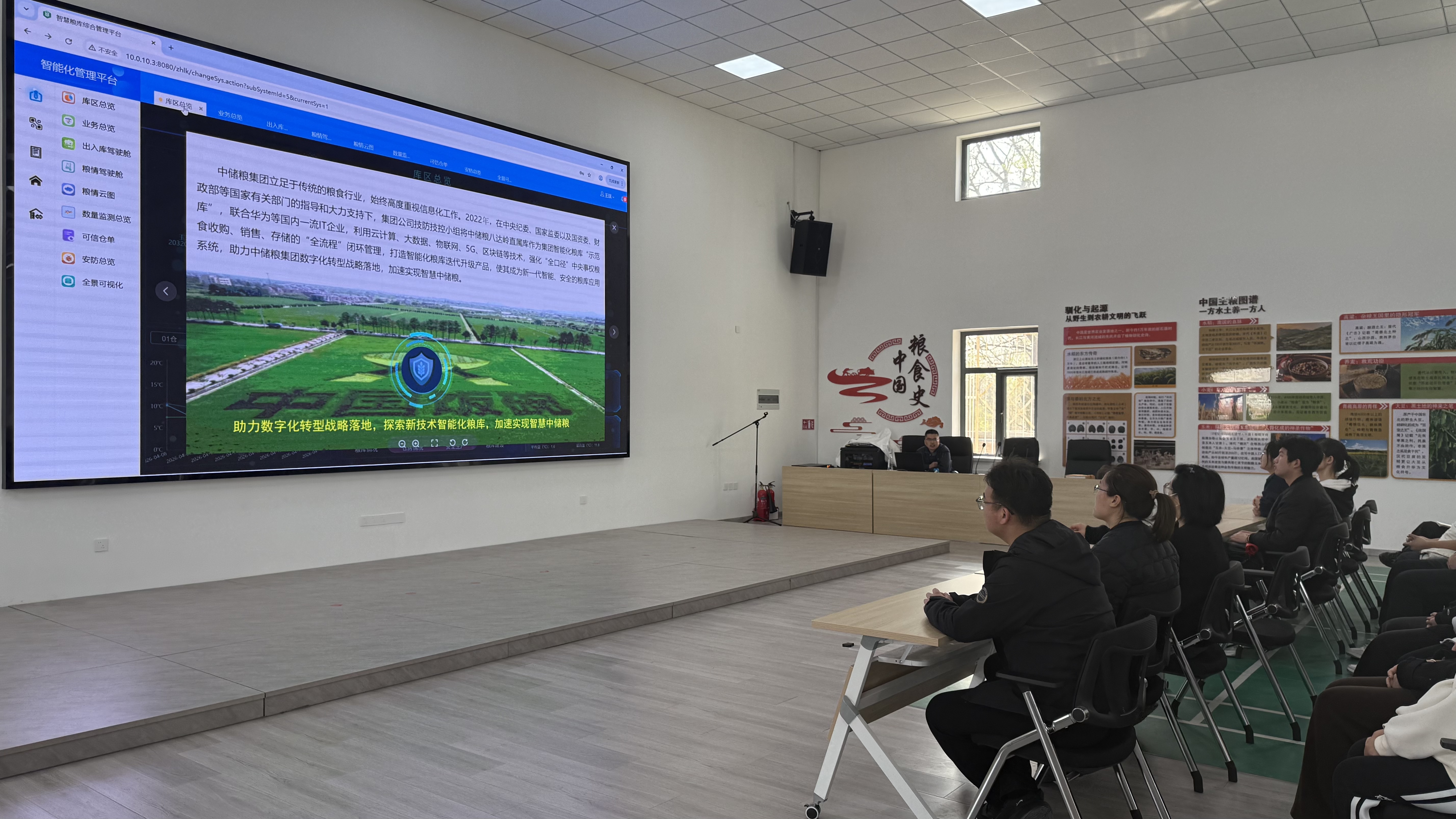师生走进公司库区的核心区域,开启沉浸式实践学习,并聆听了工作人员对公司直属库发展历程、企业使命及保障国家粮食安全的作用以及现代化粮食仓储、智能监测、质检等核心流程;随后,师生近距离感受科技赋能的力量,观摩机械臂精准作业;驻足智能检斤区域,了解无人值守系统;深入六号仓与八号仓,学习内环流控温储粮和压盖储粮技术。参观尾声,公司技术人员为师生介绍智能化管理平台,展示通信技术在粮食仓储的创新应用。