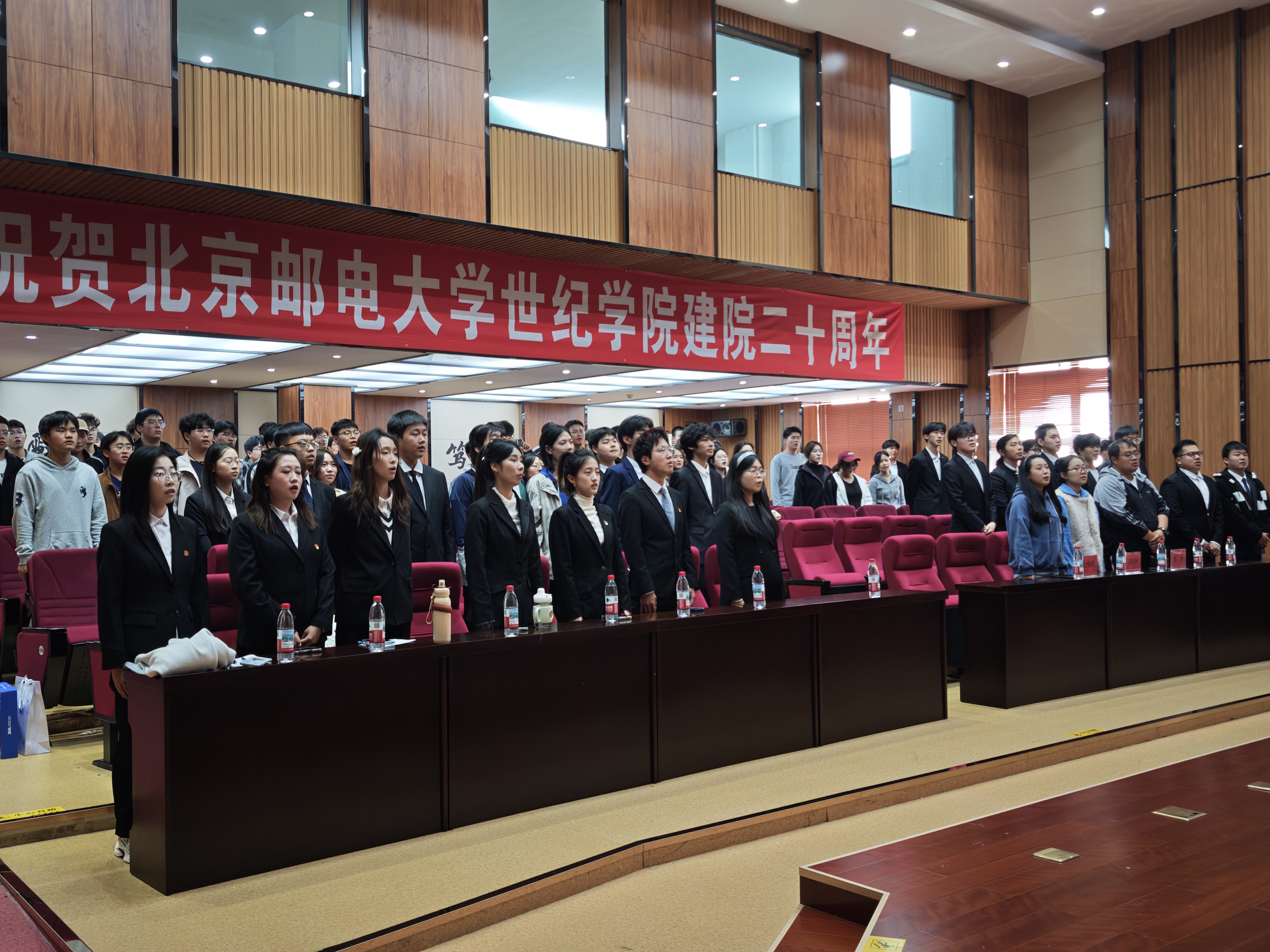 大会伊始,全体起立奏唱团歌,激昂旋律点燃在场师生的热忱与使命感。随后播放的第十九届学长学姐寄语短片,通过回顾工作、分享心得与寄予期望,让团学组织精神接续传递。新一代成员深受鼓舞,更坚定了接好接力棒、续写新辉煌的决心。学生代表杨煦宸上台发言,既回顾过去团学工作的成果、表达对第十九届成员的感谢,也代表新一届成员表态,将以饱满热情、务实作风投入工作,为组织发展贡献力量。