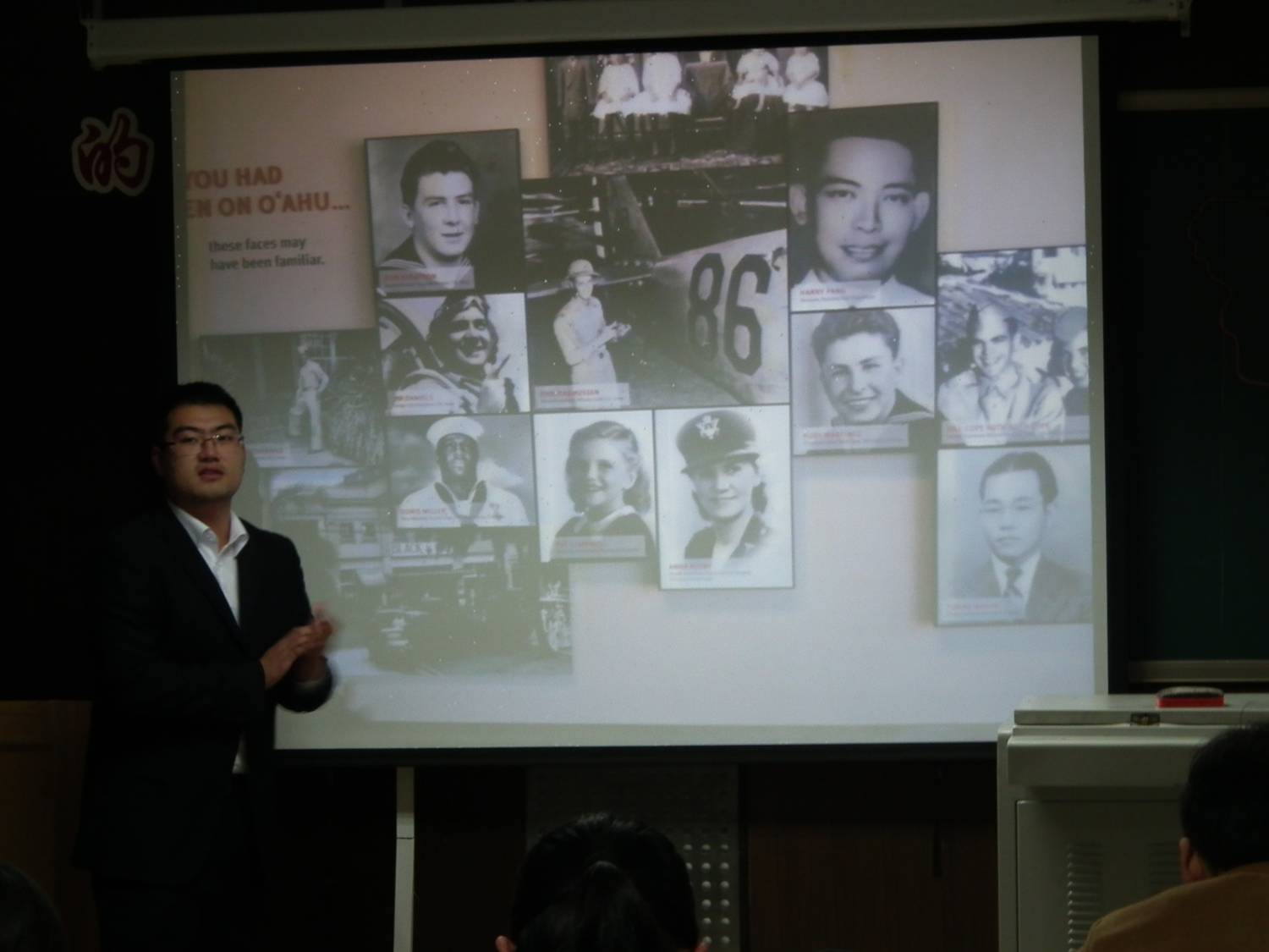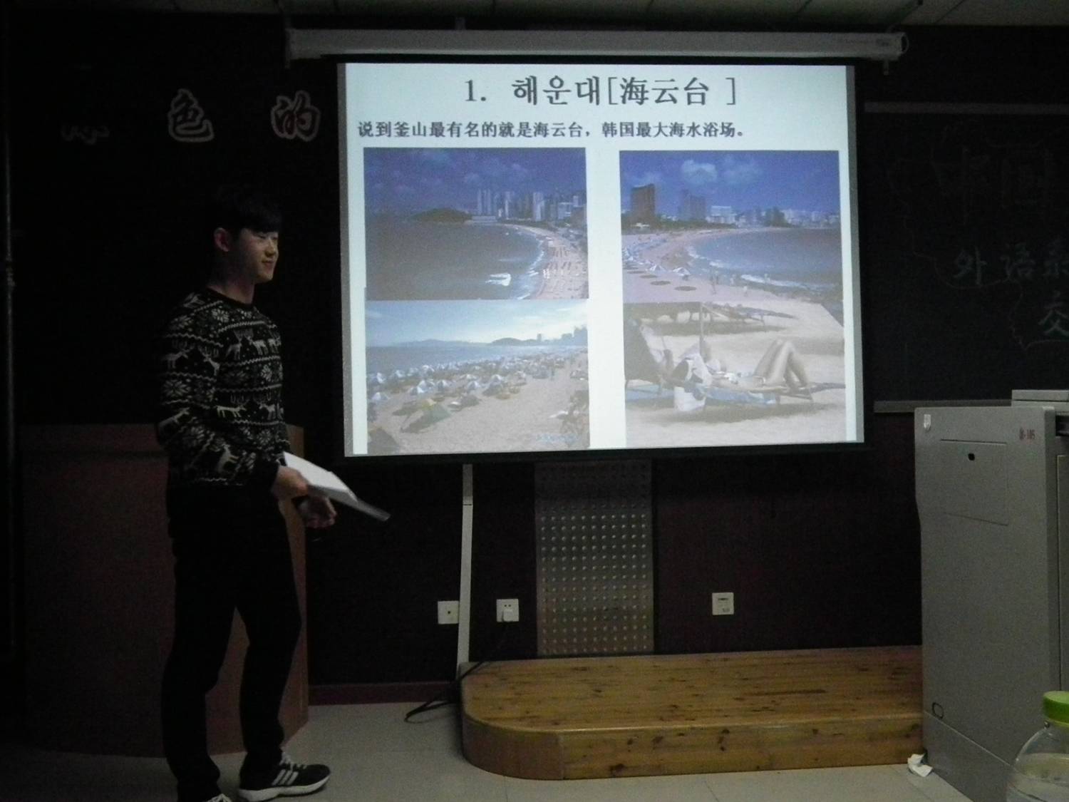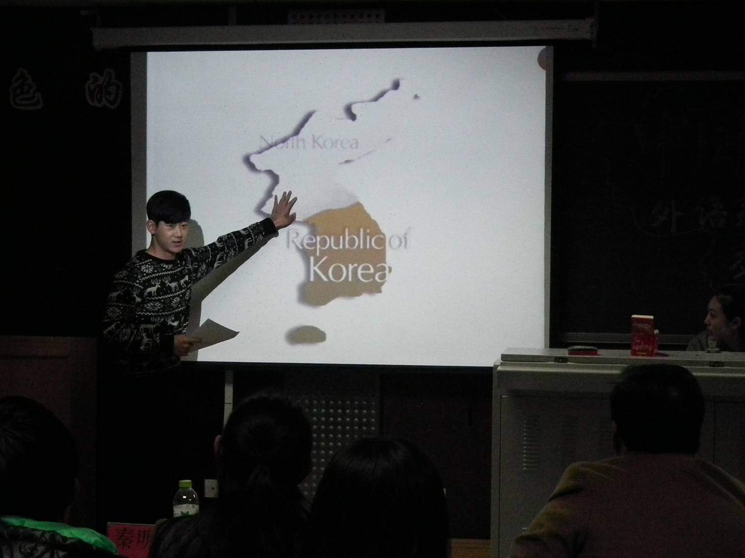 大会特别邀请了来自韩国庆云大学的5名交换生,虽然语言的不同,但出于对中文的热爱,他们坚持用不太流利的中文完成了整场介绍。展示的旅游景点、特色美食、实力大学以及韩流文化,将本次交流会推向一个新的高潮。这场介绍拉近了外语系同学与韩国留学生的距离,增添了亲切感,使韩国留学生更加适应在世纪学院的生活,更好的融入外语系这个大家庭。