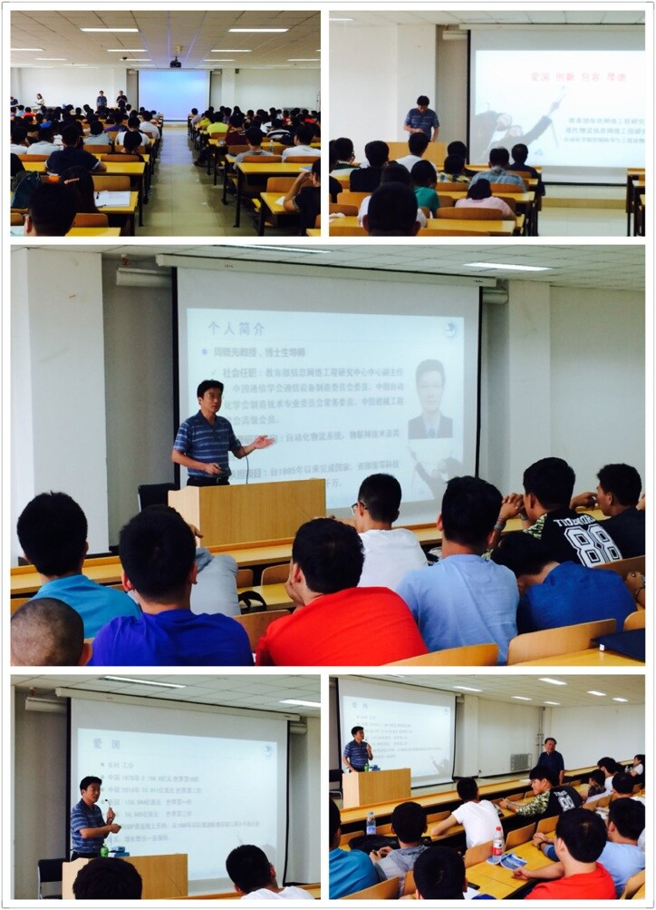 8月17日下午,2014级电子与自动化系新生迎来了他们大学生活的第一场讲座。为同学们讲授的是来自北京邮电大学自动化学院的周晓光教授。