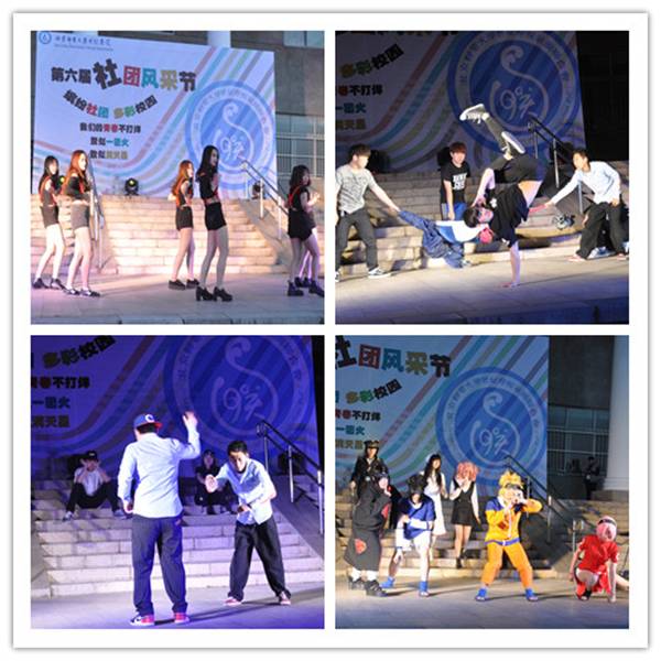 随后,各社团带着自己精心准备的节目一一登场,吉他社动感十足的摇滚歌曲使得台上台下歌声一片;南风动漫社精美的服装与可爱的舞蹈让动漫风席卷全场;“残疾人”艺术团诡异莫测的《变脸》让大家情不自禁的喝彩;趣味横生的魔术则让现场气氛达到了高潮;爱心社、美食社带来的两首独唱再一次引得全场同唱;舞蹈队曼妙的舞姿,街舞社动感十足舞步,人文舞蹈学院带来优雅的国标舞,瑜伽社的肚皮舞,S12动漫社的舞蹈也令人拍案叫绝。最后,开幕式在B—box社团深情的歌声中落下帷幕。
